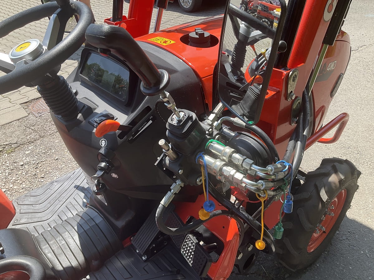 - Dołączany napęd na cztery koła zapewnia maksymalną trakcję w głębokim śniegu i na oblodzonych nawierzchniach. Mechaniczny rewers (9/3) umożliwia błyskawiczną zmianę kierunku jazdy, co jest kluczowe podczas manewrowania pługiem.