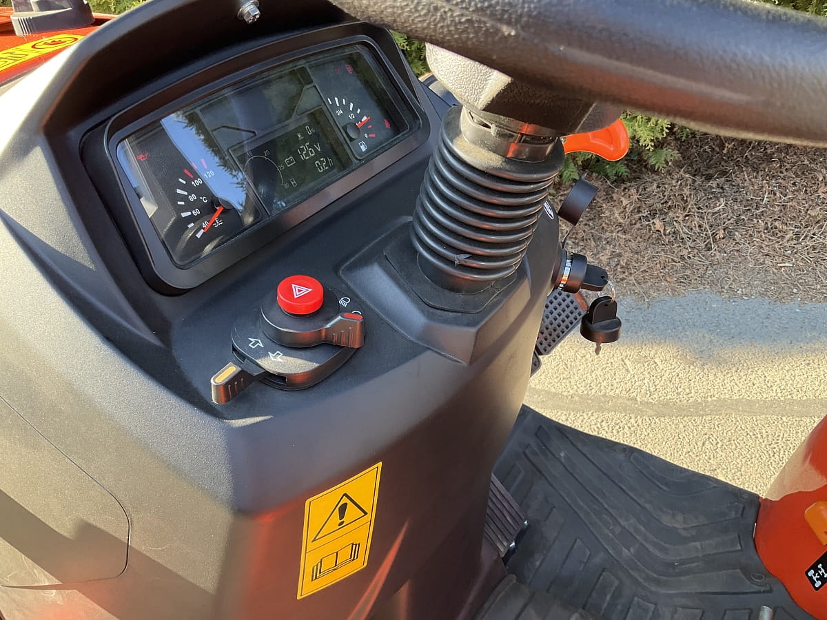 - Pół-płaska podłoga, wygodny, amortyzowany fotel i możliwość zamontowania kabiny chroniącej przed deszczem i słońcem, pozwalają na wielogodzinną, efektywną pracę bez nadmiernego zmęczenia.