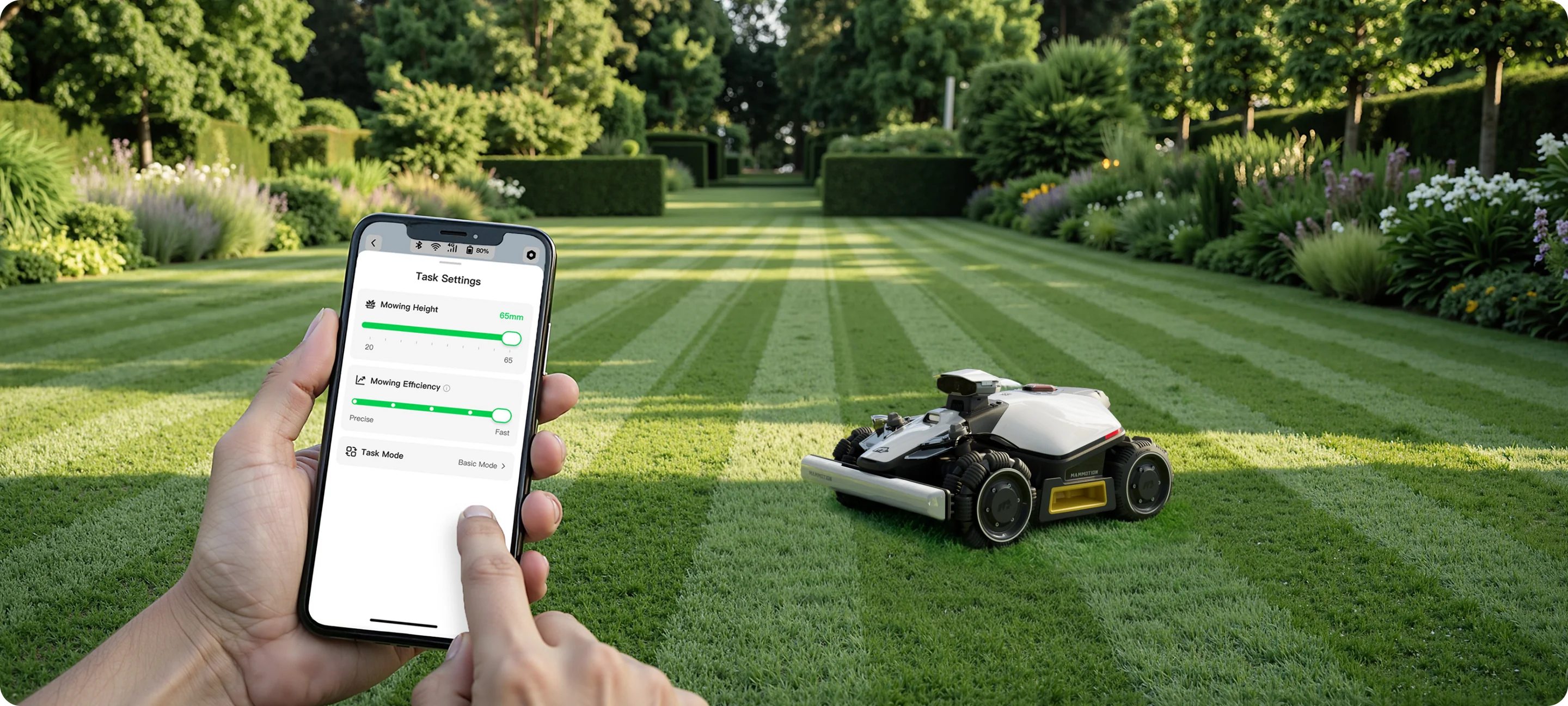 Dzięki aplikacji Mammotion masz pełną kontrolę nad pracą robota z dowolnego miejsca. Możesz tworzyć wirtualne ogrodzenia, wyznaczać strefy zakazane (No-Go Zones) dla rabat kwiatowych oraz ustawiać harmonogramy koszenia. Łączność 4G, Wi-Fi oraz Bluetooth gwarantują stały podgląd statusu urządzenia.