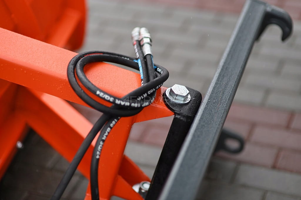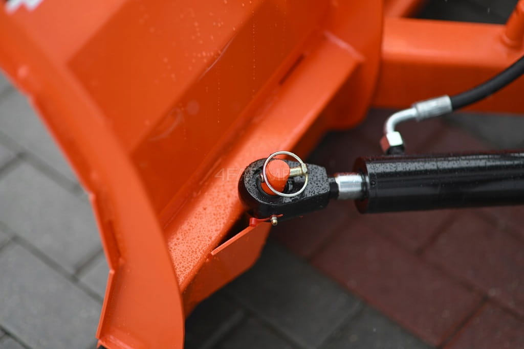 - Kąt odśnieżania jest regulowany hydraulicznie w zakresie +/- 30°, co pozwala na błyskawiczne dostosowanie kierunku odgarniania śniegu.