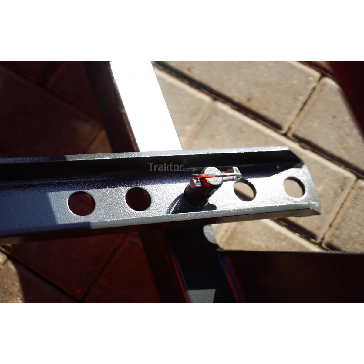 - Pług jest przystosowany do montażu na standardowym 3-punktowym Układzie Zawieszenia (TUZ) Kat. II. Umożliwia to montaż zarówno z tyłu, jak i z przodu traktora (jeśli wyposażony jest w przedni TUZ), maksymalizując wszechstronność maszyny.